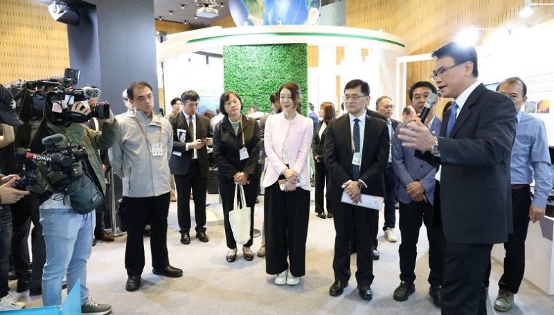 圖/金屬中心劉嘉茹董事長引導經濟部何晉滄政務次長及與會貴賓參觀主題館,介紹技術成果與創新應用