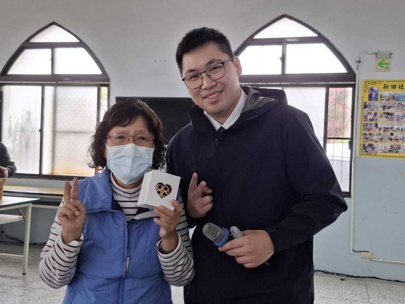 ►鄉親有獎徵答後,與翁任康醫師合影。