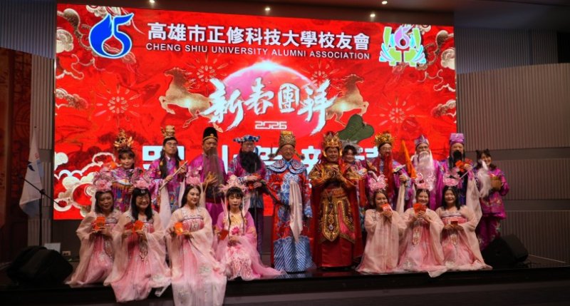典禮在喜氣洋洋的「眾仙賀新禧」中揭開序幕,校長龔瑞璋與校友總會長黃明祿分別化身「文財神」與「武財神」盛裝進場,為校友送上新春祝福;隨後「江南四才子唐伯虎點秋香」帶來精彩演出,增添歡樂氣氛。兩人並向在場校友發送紅包,龔瑞璋校長也帶領師長與校友會貴賓逐桌敬酒,共享新春喜氣。