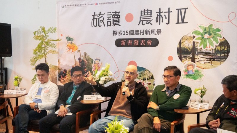 農業部農村發展及水土保持署今(13)日於台北松山文創園區舉辦《旅讀農村Ⅳ—探索15個農村新風景》新書發表會,由農村水保署蘇茂祥副署長主持,並邀請知名旅遊作家溫士凱、節目主持人吳鳳、荒野保護協會榮譽理事長李偉文及收錄案例社區夥伴等共同參與導讀與座談,透過文字、影像與對談分享,帶領與會者走讀臺灣農漁村的轉型歷程與再生能量。