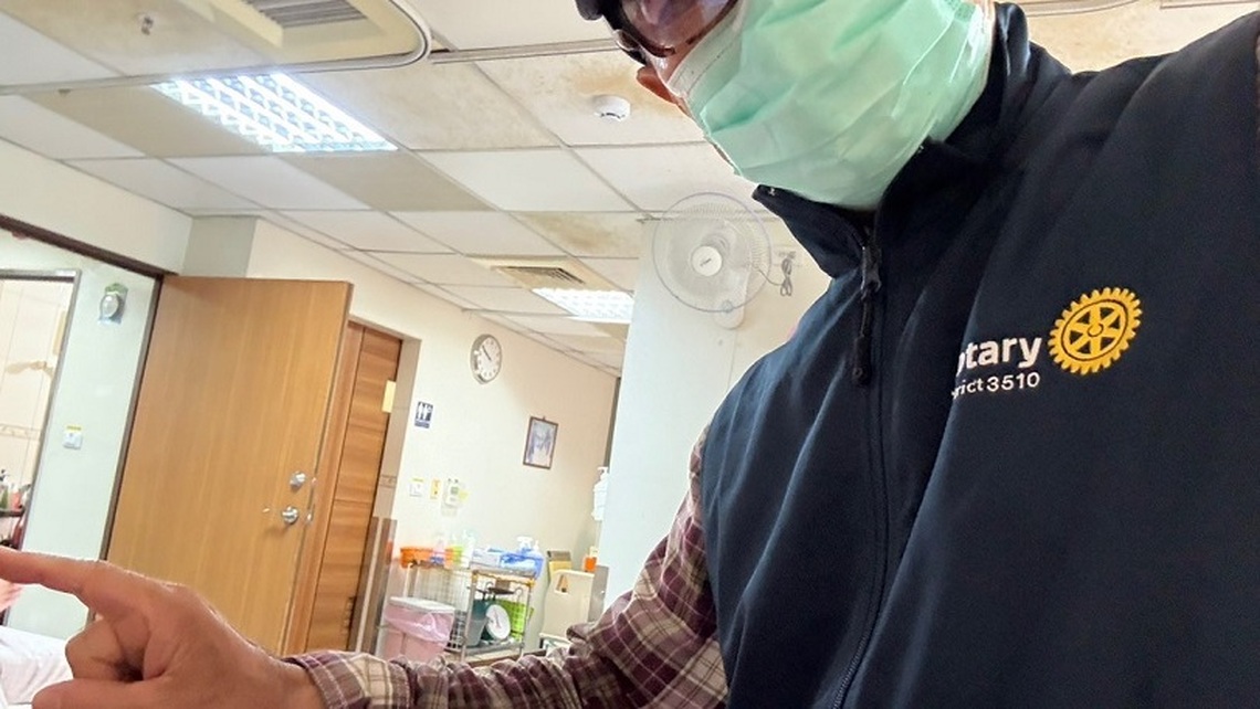 楊家福加入扶輪社超過15年,擔任過西北扶輪社社長職務,以身為「扶輪人」為傲,穿著 Rotary 3510 地區「一生一世」會服,以醫師身分前往安養機構,為臥床病人進行理學檢查與醫療照護。